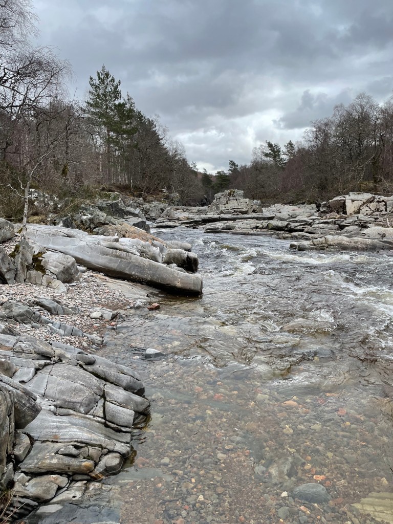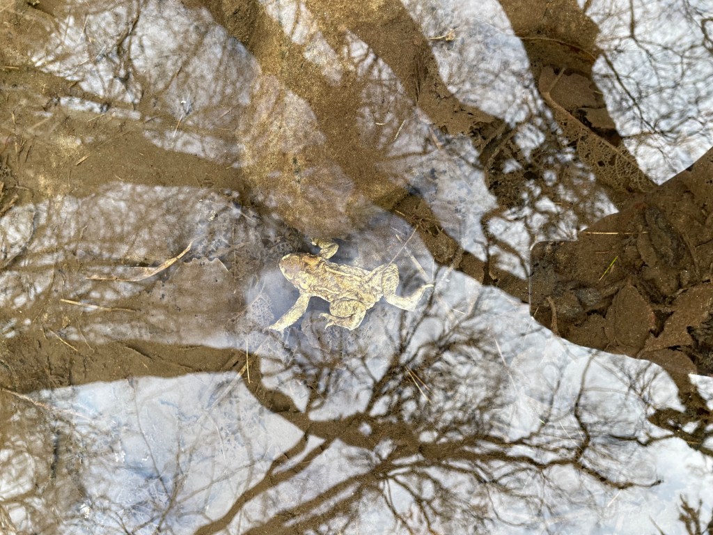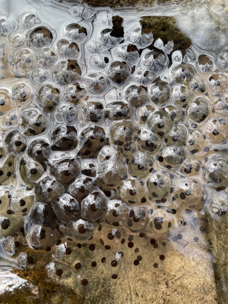The river was very clean with many frogs swimming around, and frog spawn.